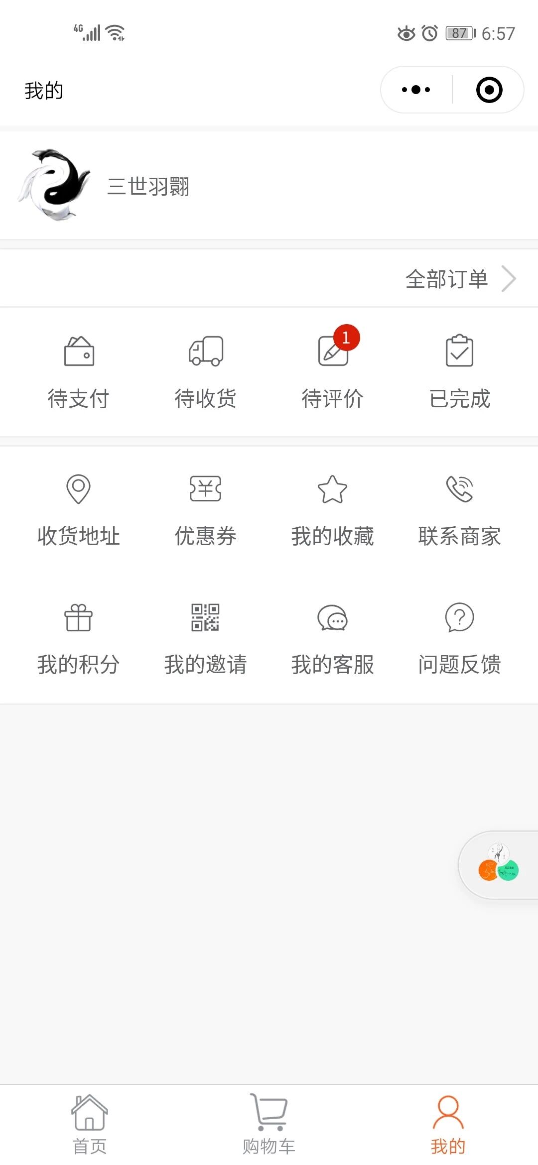 此处简化所有用户操作,由于用户信息是不必要信息,故用户可以在不授权信息依旧能正常使用,并且提供给用户微商城的一些常见功能,如:地址(其实可以使用微信收货地址)、优惠券、收藏、积分等,其中问题反馈则使用小程序反馈,客服使用小程序客服,极大简化开发成本