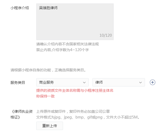 请问怎么查看 我的主体 还有 什么是小程序注册主体 能详细说一下嘛 请回复的大佬说详细一点 第一次发布没什么经验 呀不要直接告诉我 提供的资质文件主体名称需与小程序注册主体名称保持一致 这种和报错一样的话,那就和机器人没区别了 另外我上传的律师资格证是真实有效的 为什么不通过审核 请劳烦详细回答一下 占用您时间谢谢了