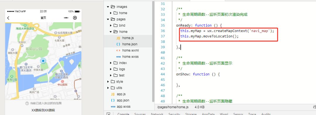 在onReady中调用moveToLocation,编译器可以打开页面地图就移动到目前为止中心,同样的代码,而手机上不行,依然显示默认的北京地址