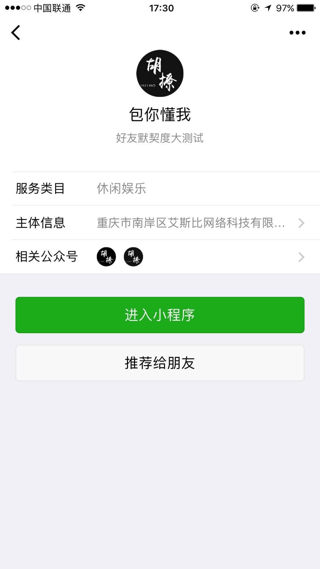 我的第一个功能是你懂我吗,跟小程序“包你懂我”的你懂我吗?基本一致,它也涉及到出题,它的分类也是娱乐,为什么它能上去,我就不能上去。