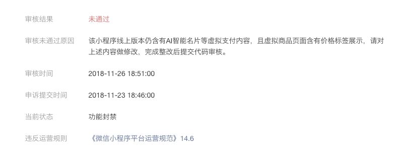 该小程序含“付费观看演讲”,虚拟商品页面含价格信息展示和支付购买按钮,请补充商品详情完成整改后再提交申诉审核