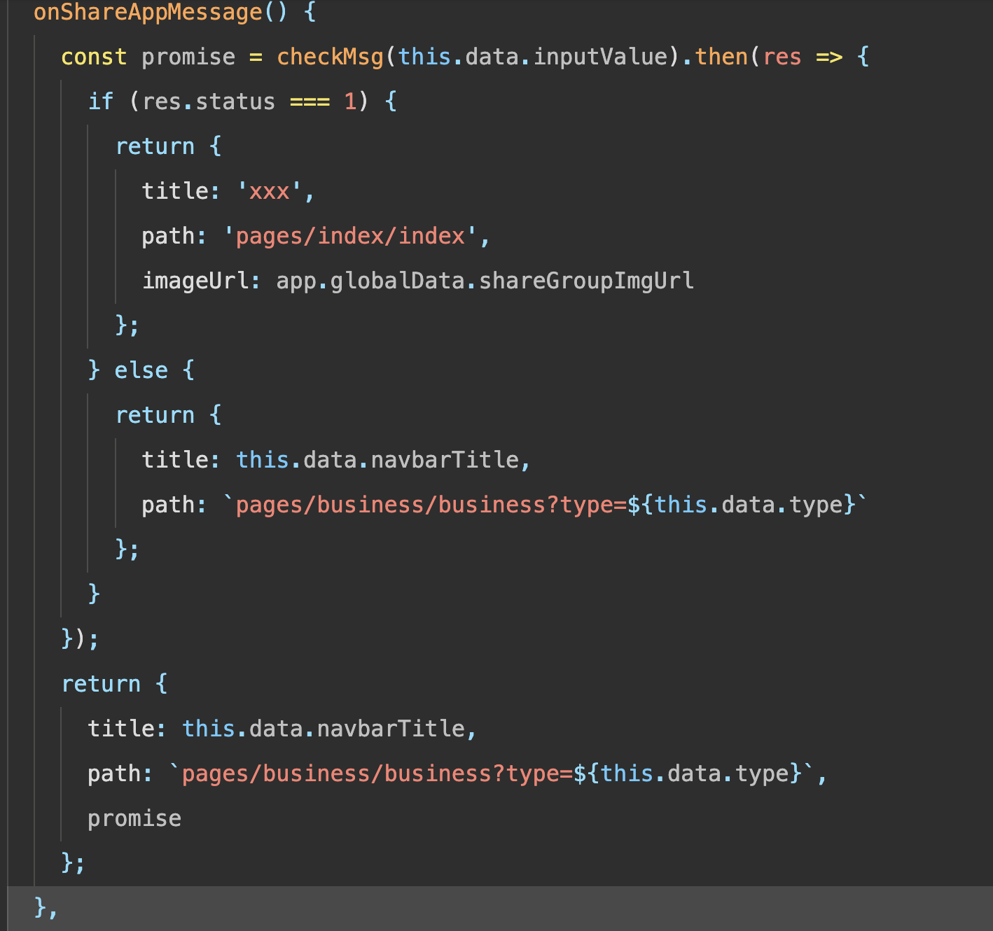 如果传入了promise参数,将无法唤起分享给好友,删掉后可以唤起。
