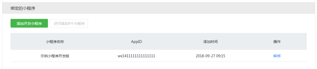 也就是下图所对应的开发小程序,假设该小程序的AppID为:wx1411111111111111