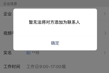 企业微信提示暂无法将对方添加为联系人,一般是什么原因