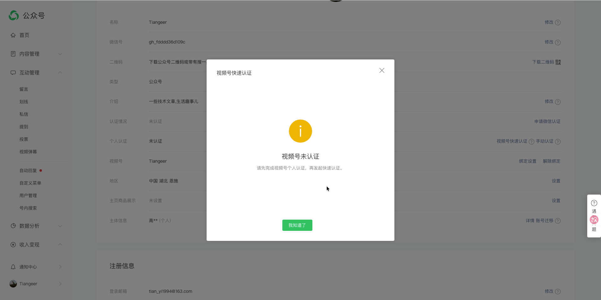 微信公众号绑定的视频号早就完成了实名认证,但在微信公众号个人认证——视频号实名认证时,微信扫码后显示视频号未实名认证?是什么原因?