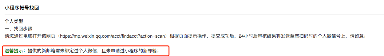 用新邮箱的话我还找回干啥呢,可以重新申请小程序了啊