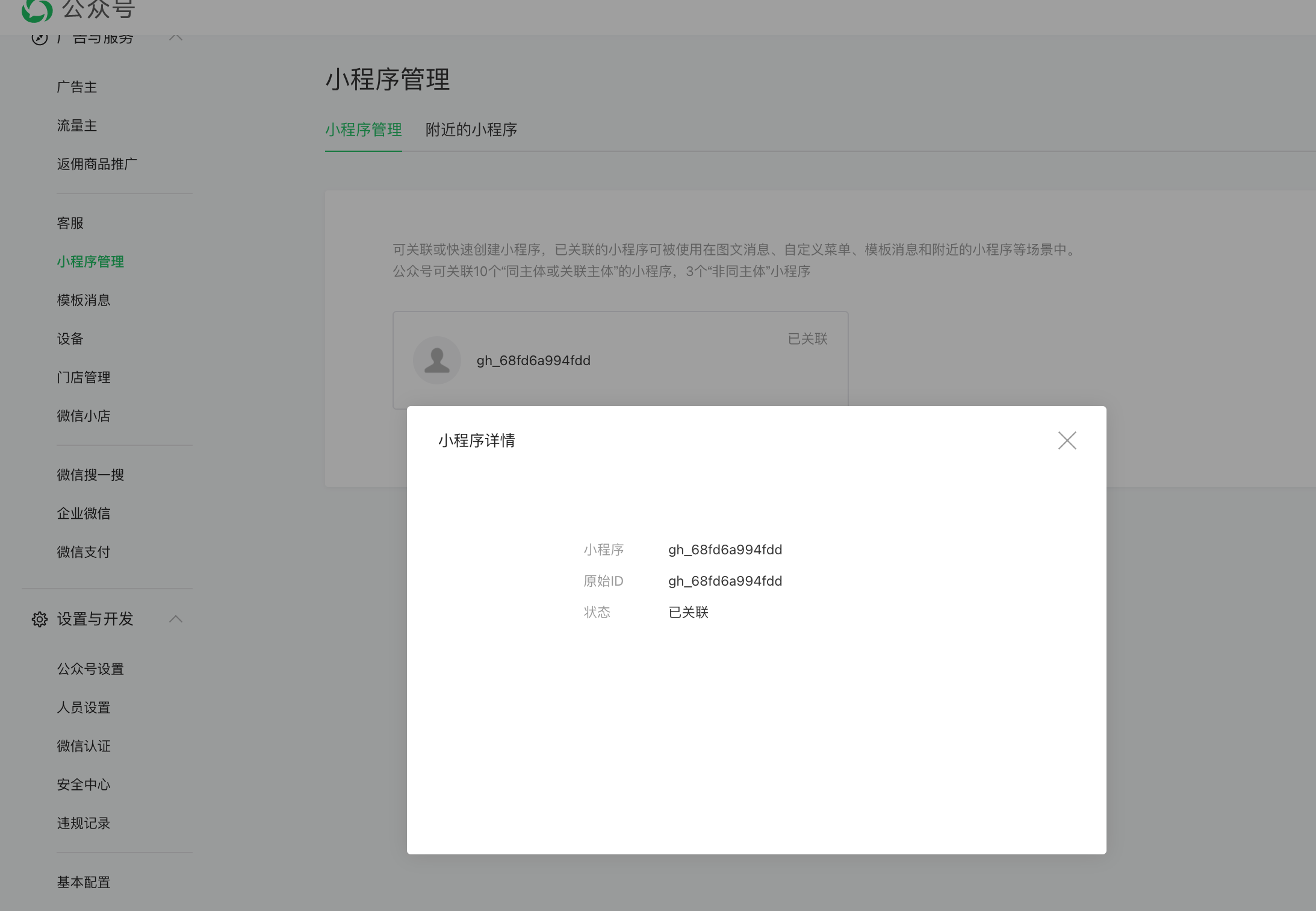 请问这个如何解决,这个关联的小程序无法删除,怎么办?