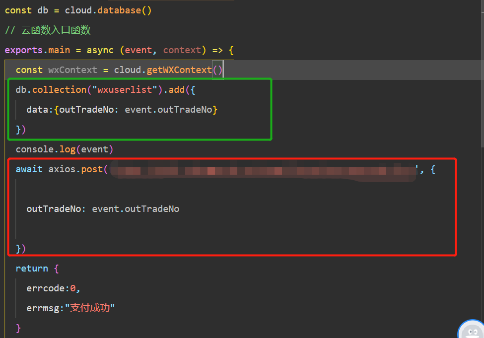 如果是通过云函数本地调用,手动模拟触发 就可以触发红色框部分的axios请求操作,这是怎么回事?有没有解决办法