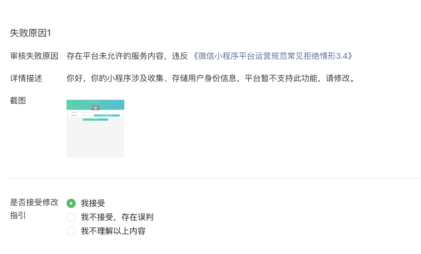 为什么第二个版本的审核失败了,就是说我违反情况?