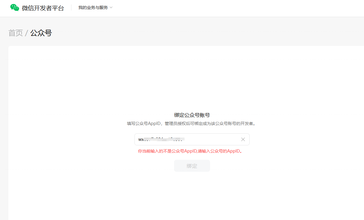 我们的确是填的我们的公众号AppId,为何提示不是公众号AppId? 我们是想绑定登录进去 设置我们的服务地址,别人关注,取消,回调我们接口,用于做业务处理