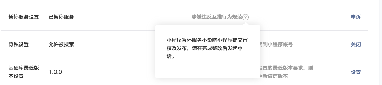 小游戏被暂停服务,重新提审发布后点申诉解封,点击进去页面内没有东西,APPID:wx33f6d826aa13eb5bg