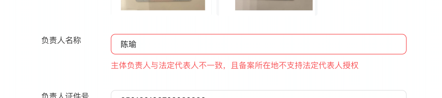 小程序备案 “主体负责人与法定代表人不一致,且备案所在地不支持法定代表人授权?可是国家企业信用已有