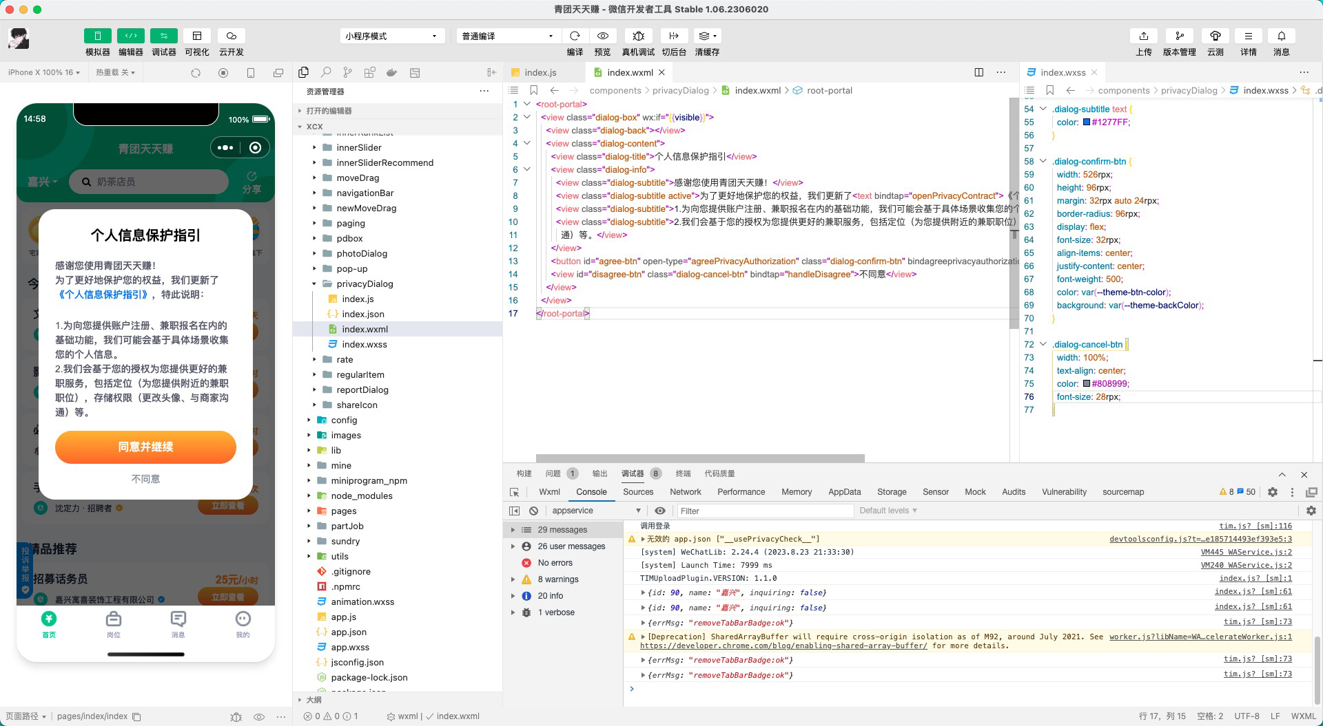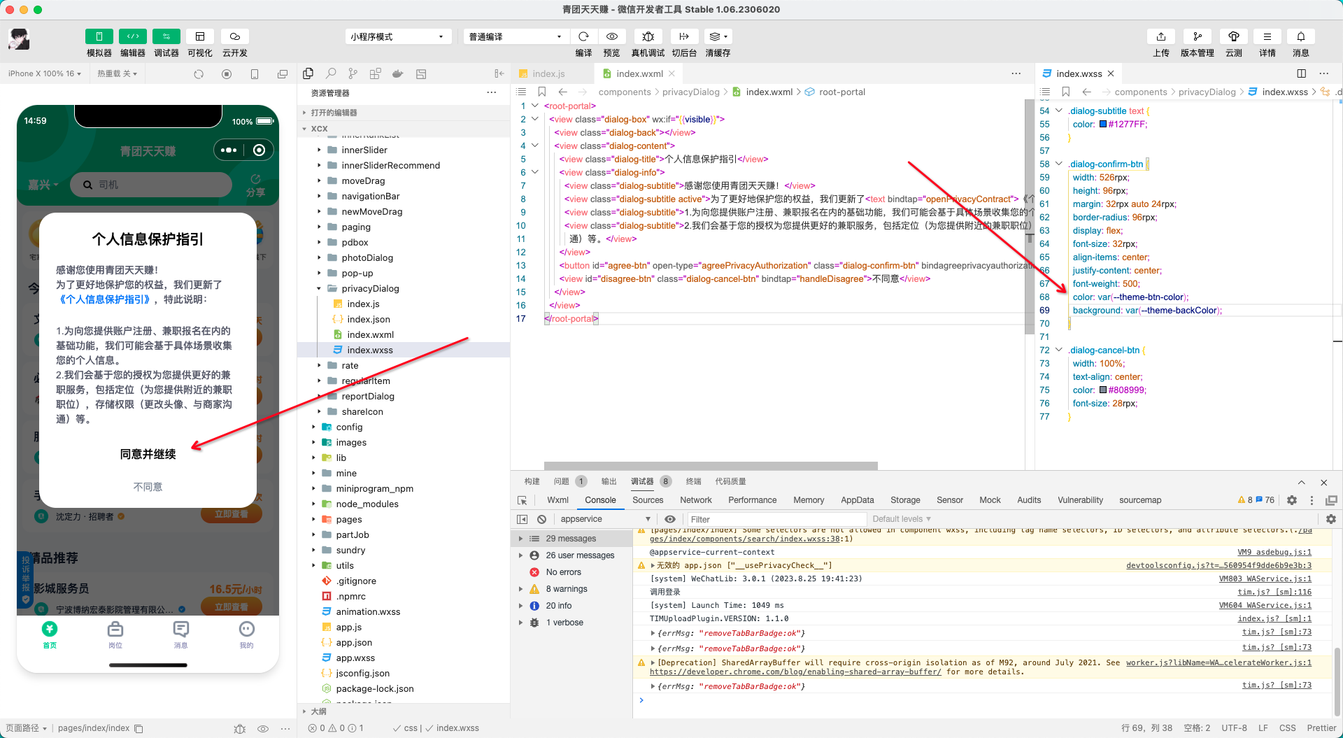 个人信息保护指引感谢您使用青团天天赚!为了更好地保护您的权益,我们更新了《个人信息保护指引》,特此说明:1.为向您提供账户注册、兼职报名在内的基础功能,我们可能会基于具体场景收集您的个人信息。2.我们会基于您的授权为您提供更好的兼职服务,包括定位(为您提供附近的兼职职位),存储权限(更改头像、与商家沟