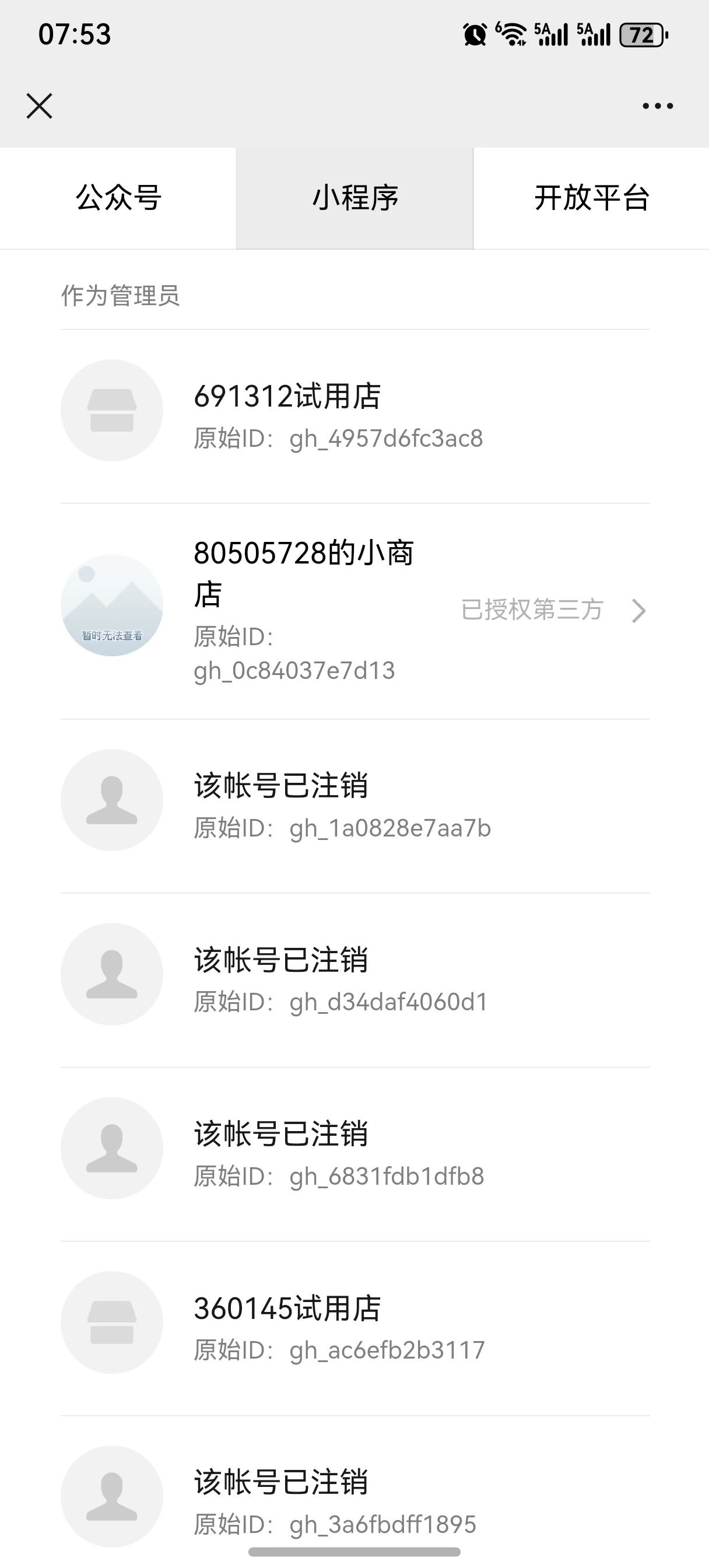 我的微信号绑定了很多试用小程序(作为管理员),已经很久了,远远超过14天了,还没注销,导致我要新建小程序,提示我已经超过5个。