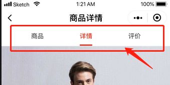 这部分导航是需要,当滚动条滑动到商品部分<view>的时候再显示出来的,然后向下滑动,当滑动到商品详情的时候自动变成红色,如何实现?(如果可以的话,还需要点击顶部导航,会滑动到相应的位置)