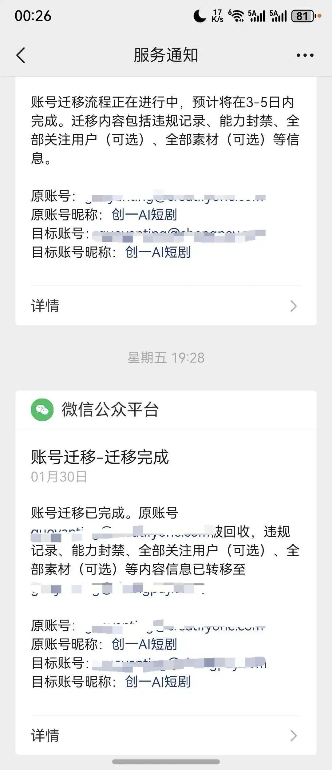 公众号已完成主体迁移,选择带原账号名称和里面的文章迁移。