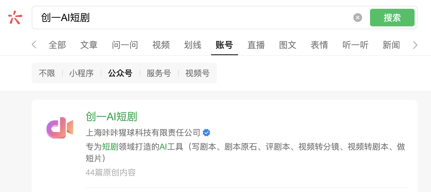 搜索词:创一AI短剧