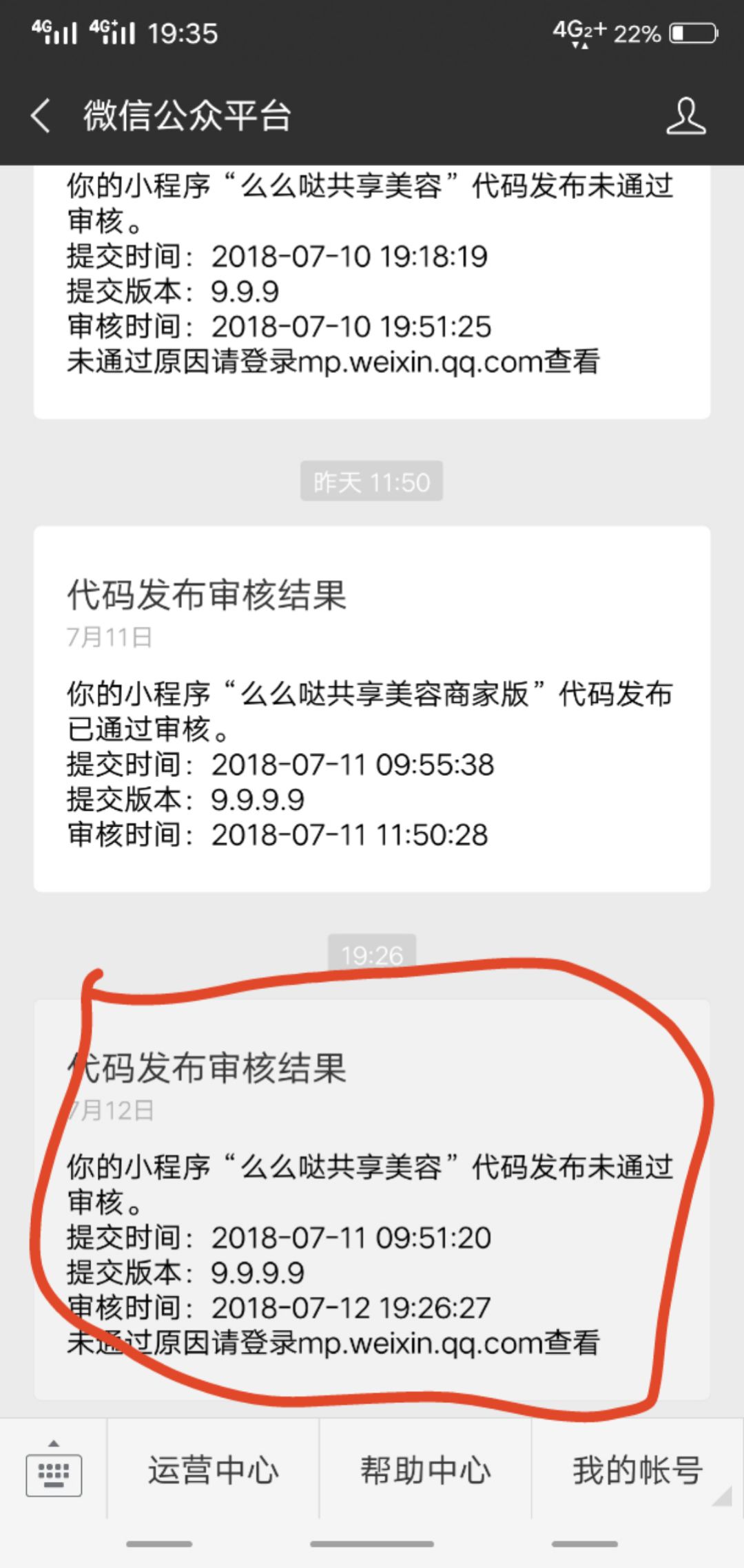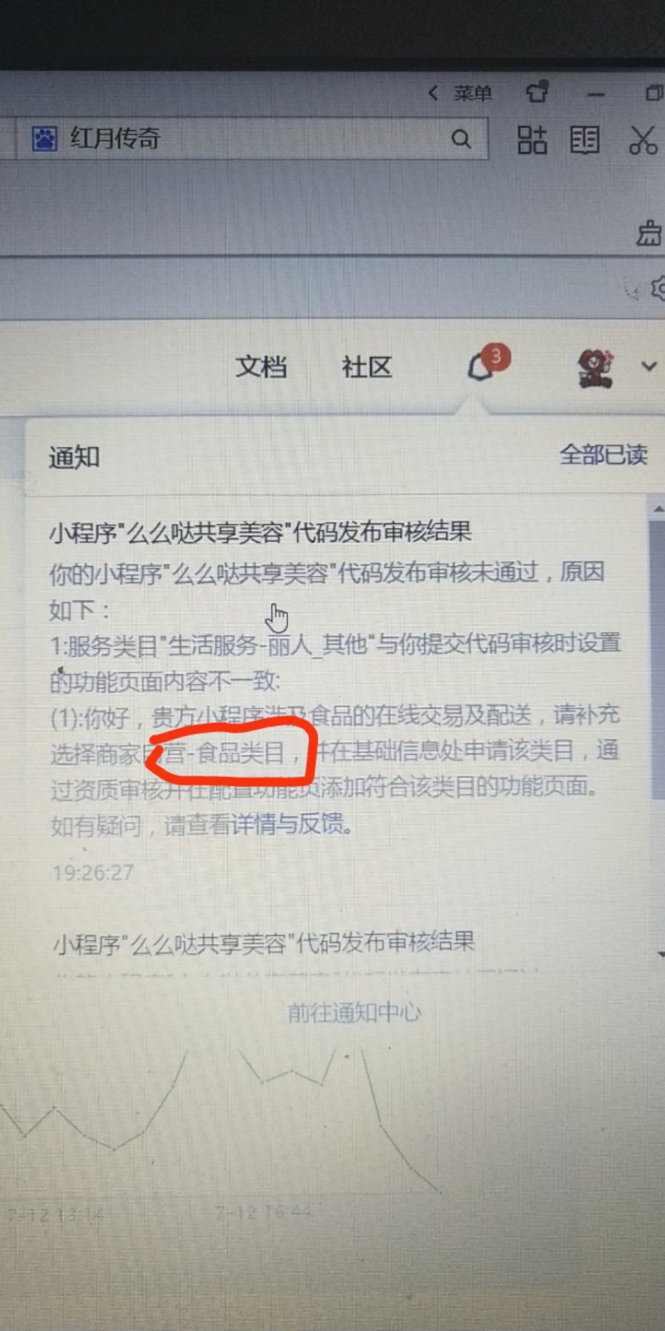 去的小程序代码申请,客服错误给拒了,说我小程序有食品类目让我添加,我的小程序根本没有食品类目.麻烦审核员赶快通过,特别着急!