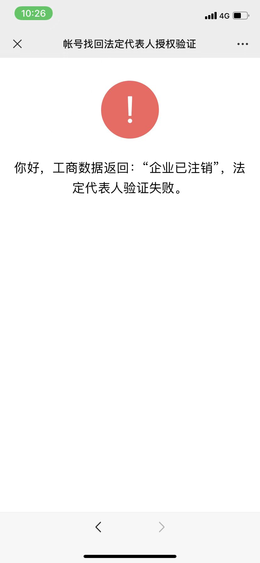 公司已经注销了,但是法人验证始终通过不了,那我要怎么注销这个东西呢,麻烦官方帮忙查一下是怎么回事,公众号原始ID gh_2cc2d83b9a15