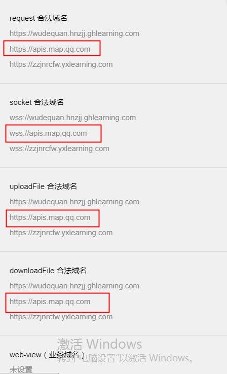 因为是代码片段便没有设置合法域名,但在我们自己项目中,合法域名是设置了的(下图为我们自己的项目中的域名配置)
