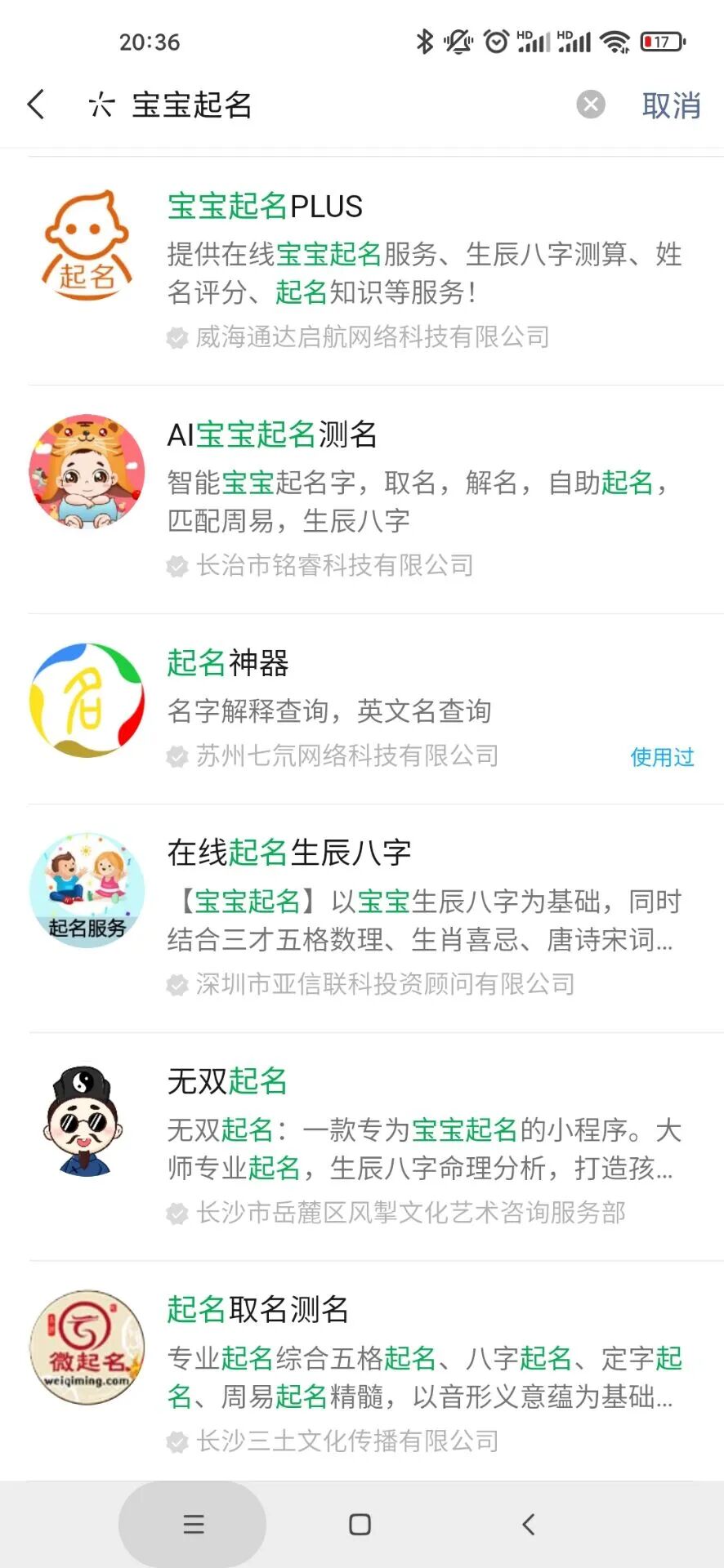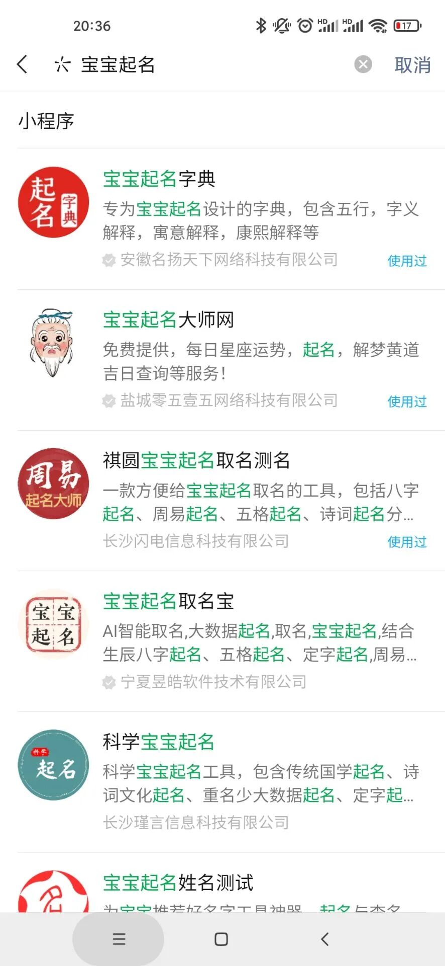 另外,小程序里搜起名,有无数个起名相关的小程序(如下图),怎么可能都违规了呢?就算违规大家都有问题才对啊!