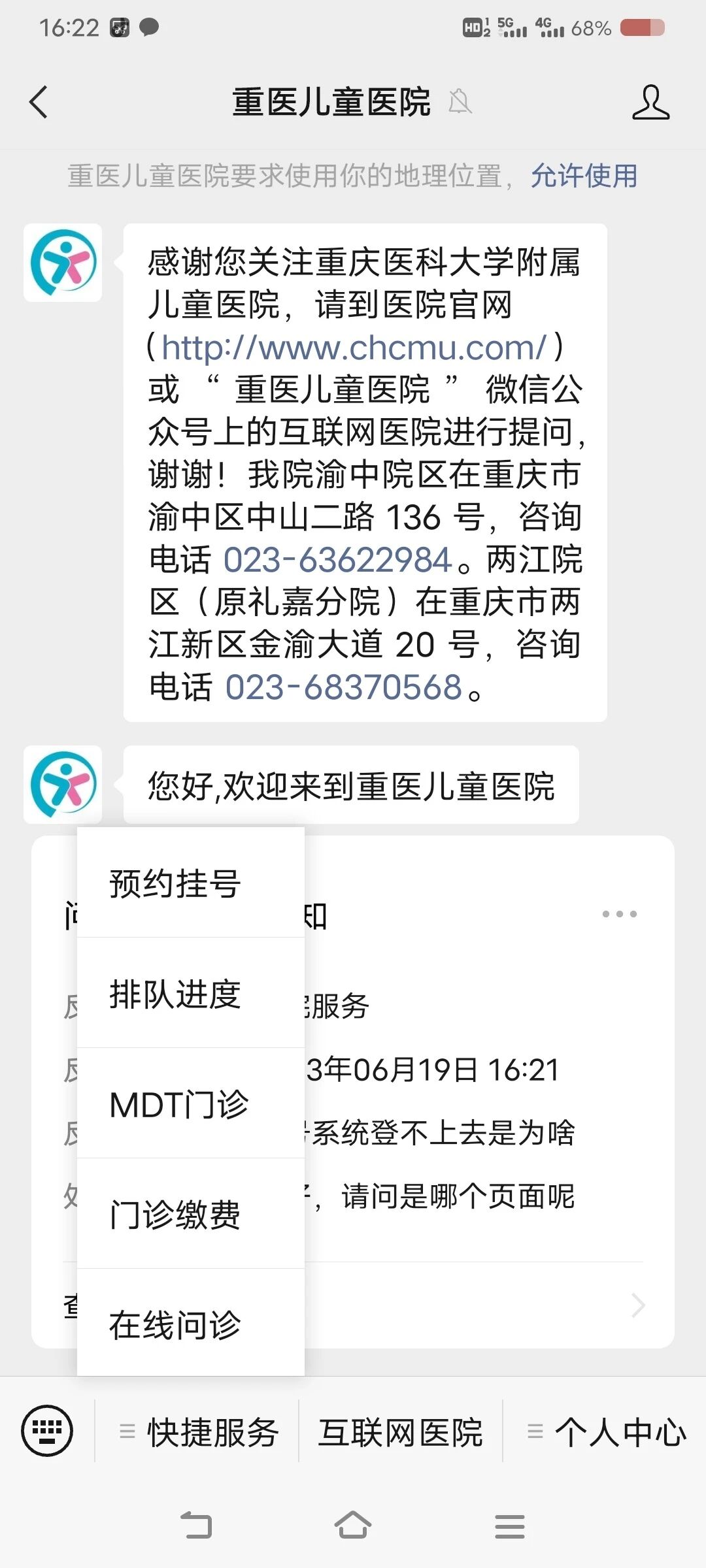 预约挂号是个 H5 的界面,我这里访问也正常,清理手机缓存再重新访问试试。还不行,上面不是有电话,反馈一下看看。