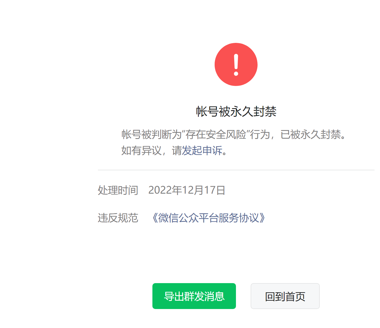 刚注册的公众号被提示:帐号被判断为“存在安全风险”行为,已被永久封禁?
