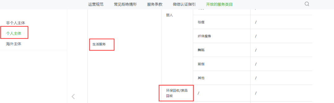 为什么审核不通过显示:属个人小程序未开放类目,个人开放的服务类目明明是有:生活服务-环保回收/废品回收的,而且还两次审核不通过了已经,请给个稍微详细点的解释!