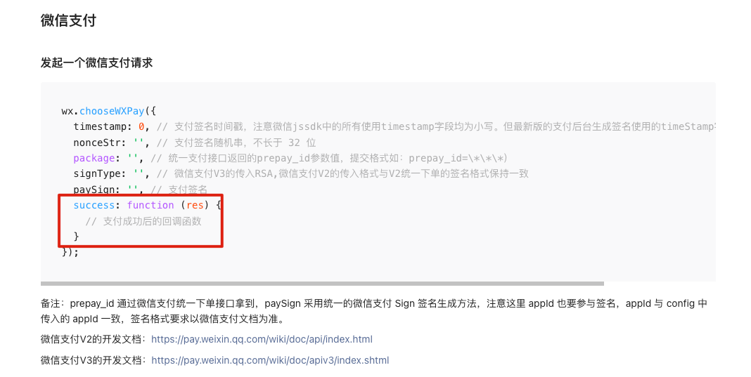 但是微信支付开发者文档里,写的是通过 WeixinJSBridge.invoke 的方式调用的,这种方式有失败回调,到底要用哪一种呢?