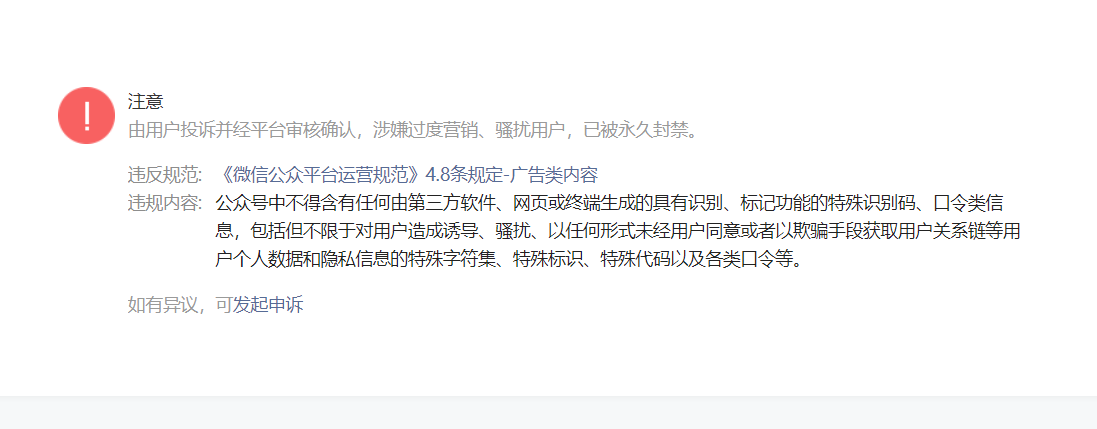 经用户投诉,发现内容涉嫌过度营销,骚扰用户,请自觉遵守国家相关法律法规,不从事违法或违反《微信公众平台服务协议》及相关规则的内容和行为,谢谢。