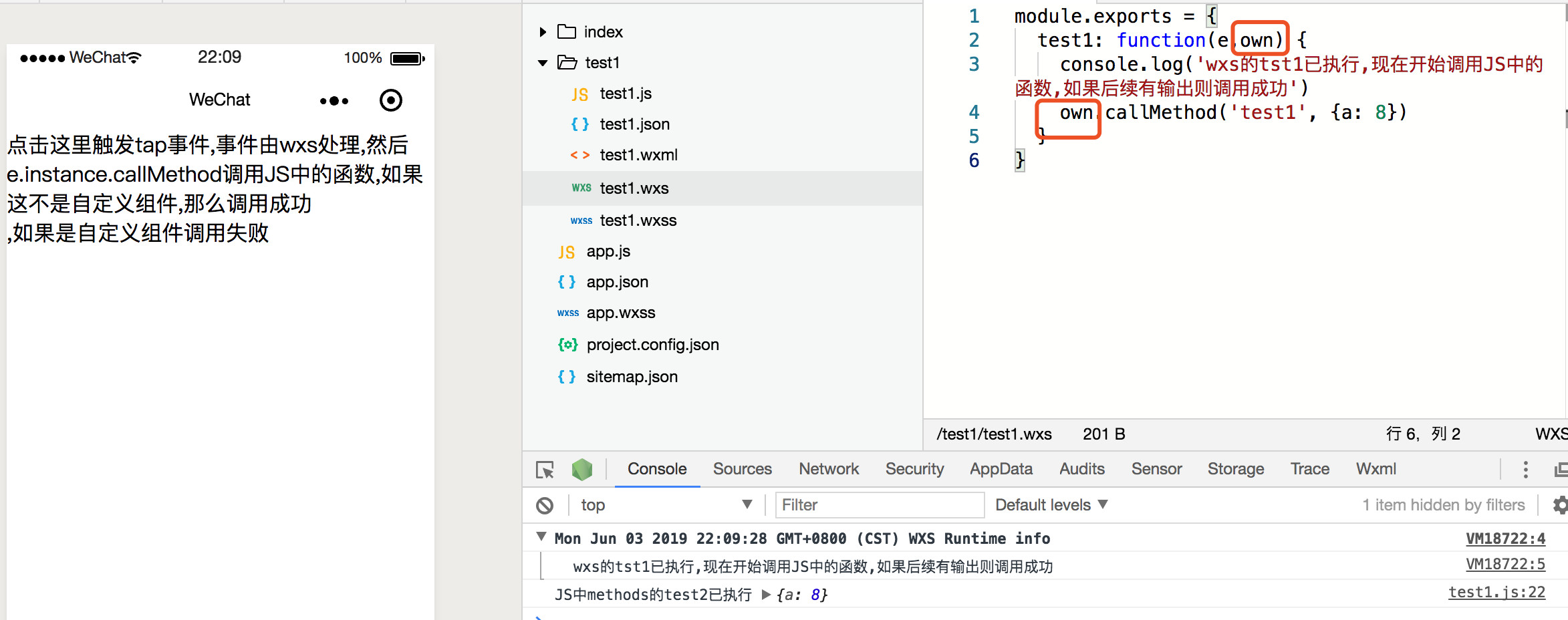 e.instance表示的其实是text组件的实例,他并没有test1方法,ownerINstance才表示你所在的test1这个自定义组件