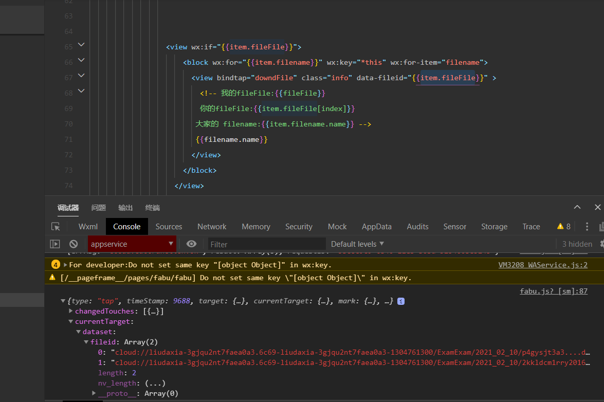 <block wx:for="{{item.fileFile}}" wx:key="*this" wx:for-item="fileFile">
