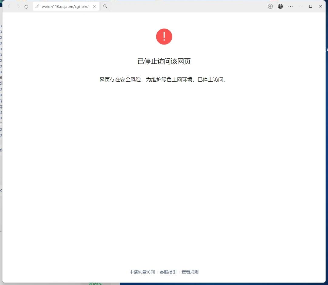 但是微信打开就是显示,网页存在安全风险为维护绿色上网环境,已停止访问。麻烦解除拦截恢复可直接在微信内访问该网站谢谢审核大人.