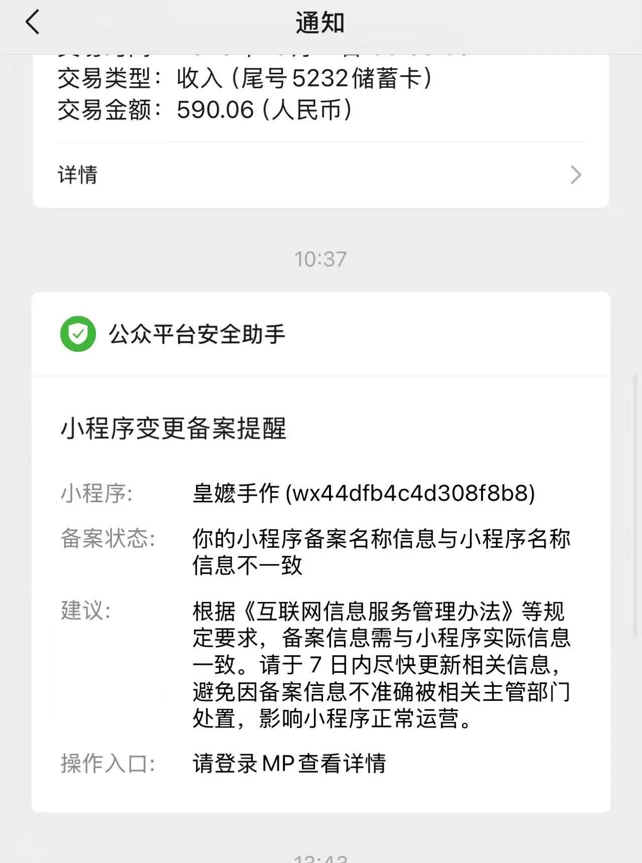 老提示要重新备案 问问小程序名称 和营业执照不一致可以的吗?