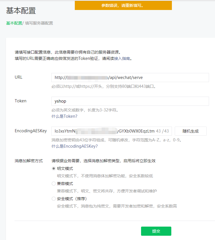 服务器配置时:参数错误,请重新填写。请帮忙看下什么原因
