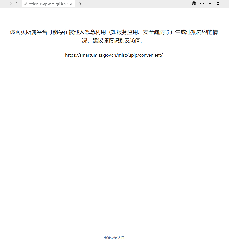 https://smartum.sz.gov.cn/,,报错“该网页所属平台可能存在被他人恶意利用(如服务滥用、安全漏洞等)生成违规内容的情况”,一会可以访问,一会不可以访问?