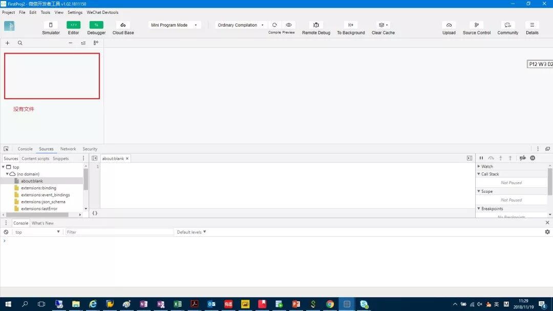 使用快速模板创建了项目,里面没有任何文件。