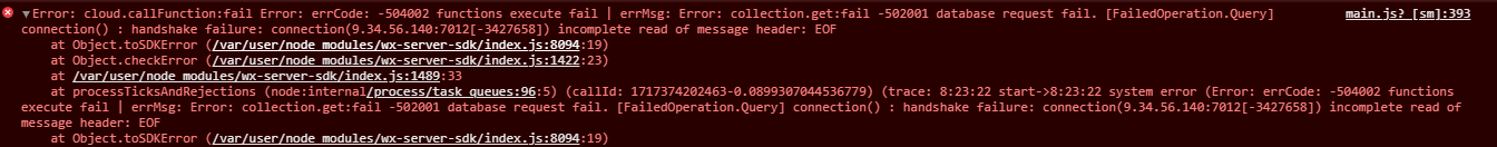 之前都是正常的,今天打开小程序突然出现:小程序访问时出现incomplete read of message header: EOF,