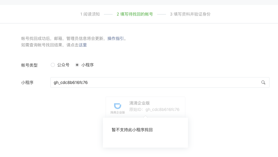 取消冻结需要先找回账号,然后又“不支持此小程序找回”