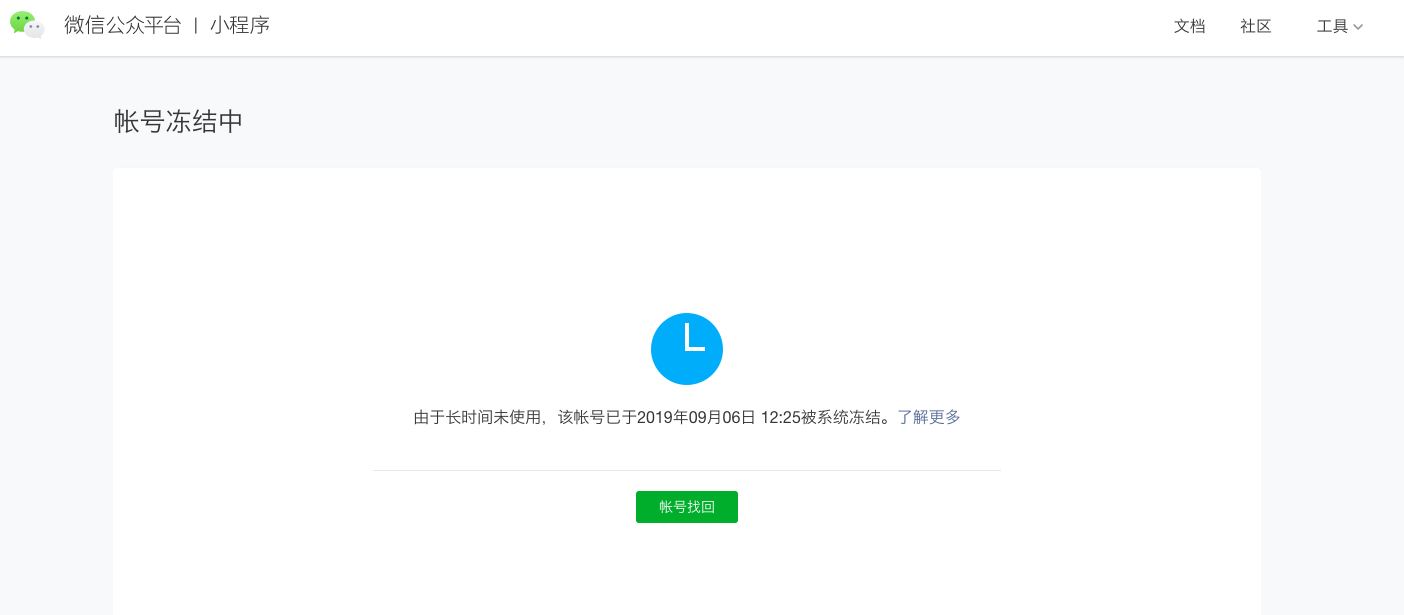 我们尝试在小程序后台进行注销,发现账号已经被冻结。