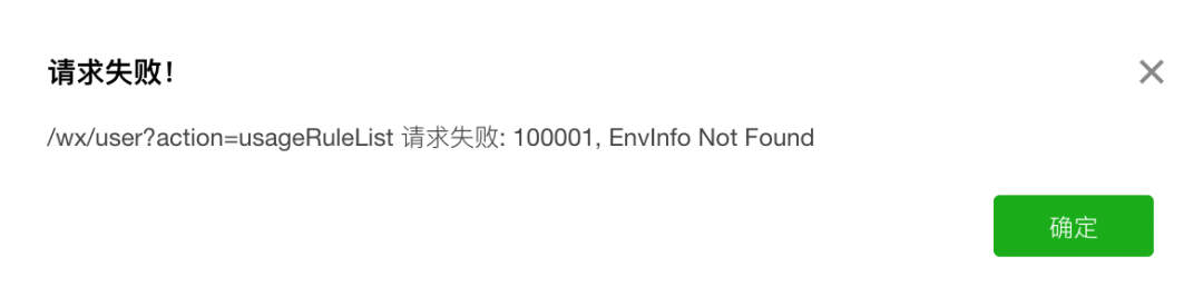 /wx/user?action=usageRuleList 请求失败: 100001, EnvInfo Not Found