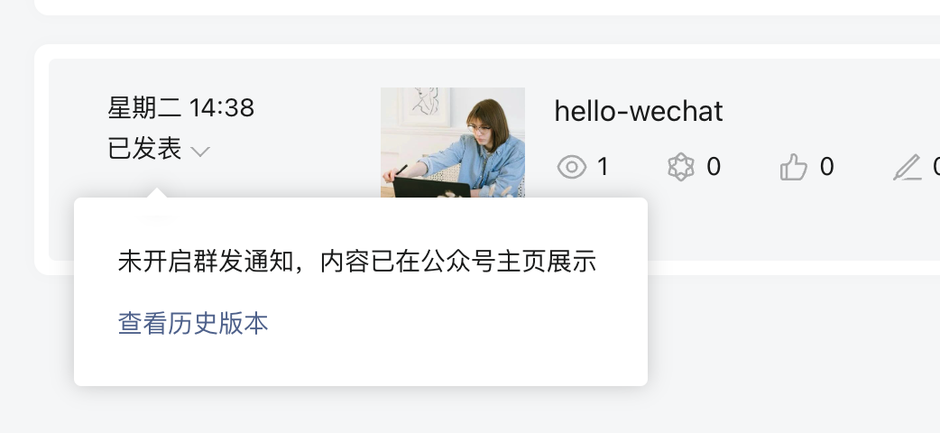 目前通过接口发布的内容暂时不会显示在公众号主页上面。
