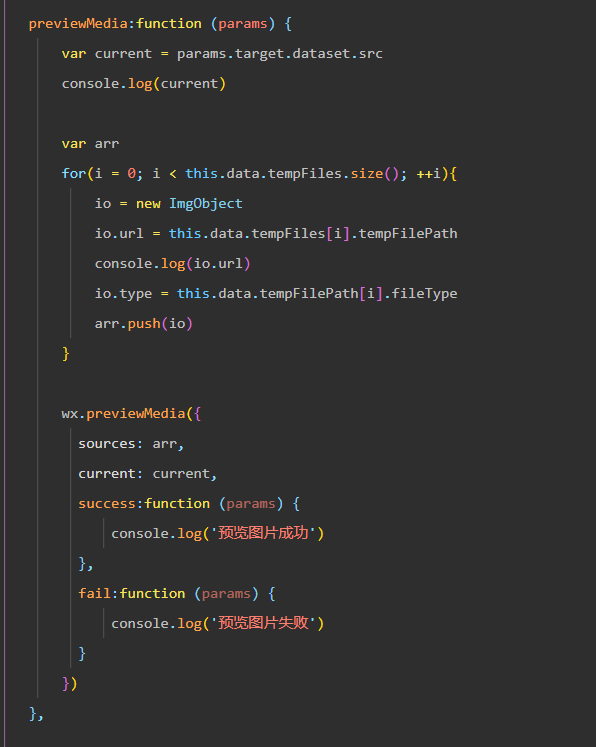 wx.previewMedia({ sources: [{ url: "https://xxx.xxx.png", // 预览地址,可图片可视频 type: "image", // image:图片,video: 视频 poster: "https://xxx.png" // type为video时需要用到 }], current: 0, // 当前资源下标 showmenu: true, // 如果是二维码\小程序码图片是否支持长按识别 referrerPolicy: `https://servicewechat.com/{小程序appid}/0/page-frame.html`, // 如果是cdn图片,并且设置了防盗链. success: res = { console.log(res) }, fail: err => { console.log(err) } })