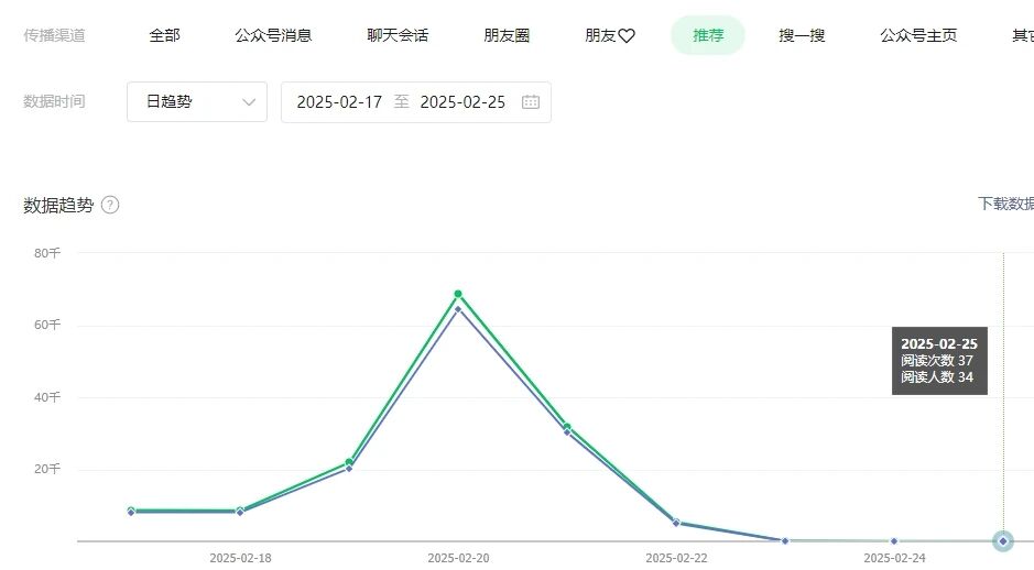 从这个月22号开始,公众号文章推荐突然断崖式下跌,接近0,反复查看没有违规通知,从来没有遇到过这样的情况。