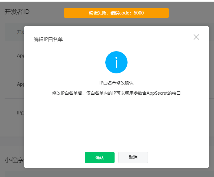 1、2024-08-26日8:57左右操作删除和添加IP白名单,保存时提示错误“编辑失败,错误code:6000”(下图)