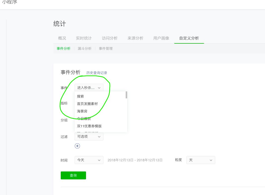 这里的事件分析可以提供输入联想搜索吗?假如事件超多,要一直下拉慢慢找,很多的时候明显不现实。。。。。最好既可以输入,也可以下拉,方便查询选择。。。。