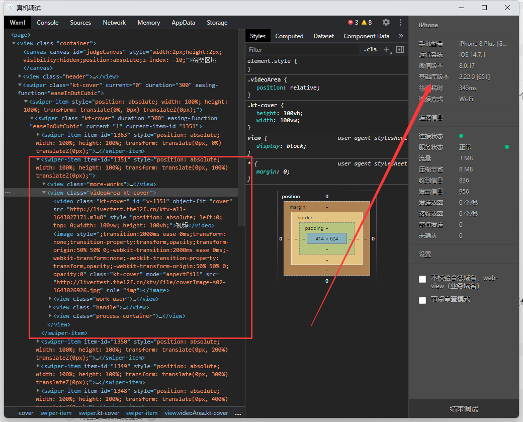 swiper组件,经过我两天测试,发现ios真机基础库为2.22.0的版本,会出现首次进入小程序,页面加载后,swiper-item 只有第一个正常显示,后面的dom都加载出来了,界面上不显示,这是我的单独的一个swiper-item(有点复杂,主要是未显示的内容里,我审查节点,dom其实都加载出来了));