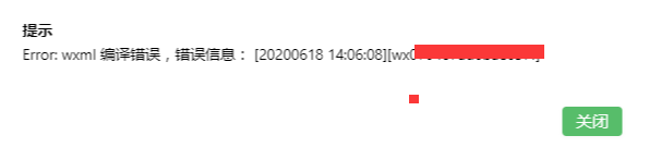 code\package.nw\core.wxvpkg\a932aac82ac84fc9c6c92194bd88204e.js] task type:upload exec error Error: wxml 编译错误,错误信息: [20200618 13:59:44][wx ]
