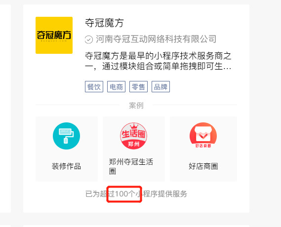 服务商可创建自己的企业主页,添加模板开发、定制化开发、插件等服务,便于商家、开发者找到合适的服务并便捷接入,降低小程序开发成本;促成开发者间协同合作。