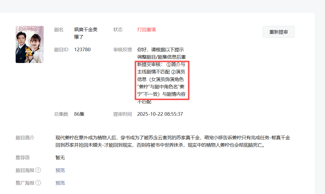 这部剧里的角色名称就是姜柠,不明白这个判断是机器人判断的还是人为的?剧情简介也是根据真实剧情写的?是如何判断与主线剧情不符合的?